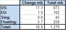 Since November last year when OPEC decided to cut the number of DUCs increased by 1188 wells to June (4 main regions). Again looking at current well and production profiles this equates to some 370 mb of producible oil over a three year period from these 1188 wells.