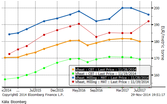 Under kommande år är det pga Ryssland troligt att efterfrågan på spannmål som foder till grisar inom EU blir dämpad. Samtidigt verkar Europas höstsådd vara i nivå med förra årets, vilket givet normalt odlingsväder bör kunna ge ytterligare en rekordskörd av vete. Att Ryssland har dålig kondition på sitt vete behöver inte alls vara den kursdrivande faktor som spannmålsodlare hoppas på.
