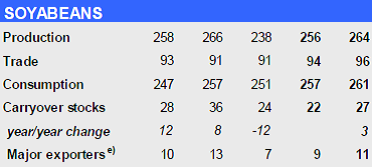 Den globala produktionen av vete justeras ned från 657 mt till 655 mt som en följd av lägre avkastning i EU och Kazakstan, liksom försämrade utsikter för grödan i Argentina och Australien. För majs, justeras den globala produktionen ned med 3 mt till 830 mt, vilket är långt under USDA’s senaste prognos på 839.02 mt, pga att utsikterna för produktionen på det norra halvklotet mestadels har försämrats. IGC är dock positiva till produktionen av sojabönor och höjer där sin prognos för den globala produktionen med 8 mt till 264 mt, men säger samtidigt att prognosen bygger på gynnsamt väder för de viktiga sydamerikanska grödorna.