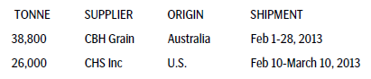 Sydkoreanska Daehan Flour Mills Co Ltd har köpt 64,800 ton vete från Australien och USA med leverans i februari-mars 2013.