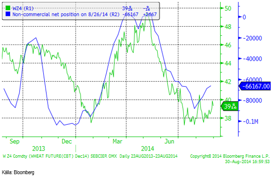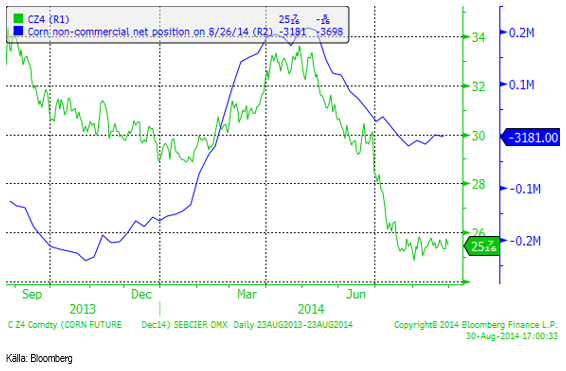 Liksom för vetet tror vi att risken är på uppsidan på kort sikt, pga att vi inte tror att Rysslands aggression mot Ukraina kommer att minska och inte påverkas av EU:s och USA:s kommande sanktioner.