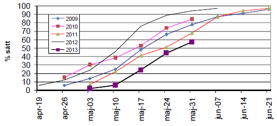 Nedan ser vi såddens utveckling i jämförelse med tidigare år.