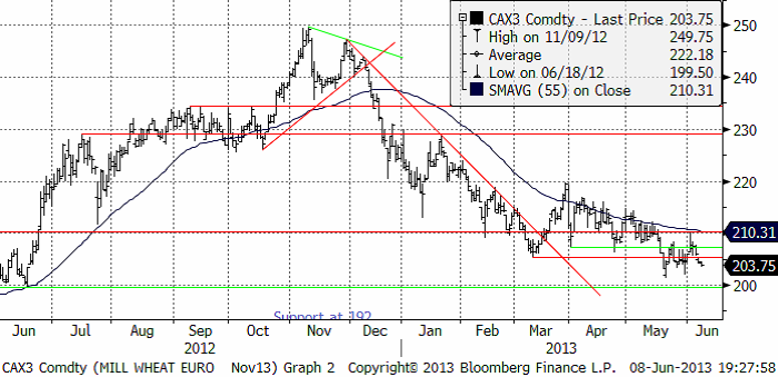 Priset på novemberterminen på Matif föll till 203.75 euro per ton i veckan som gick. Detta trots att Egypten bett Frankrike om hjälp med spannmålsförsörjning, lagring och finansiering av detta, översvämningar i östra Tyskland och att EU-Kommissionen sänkt skördeestimatet med 2 mt till 127.9 mt. Trots allt är det en större skörd än förra årets 123.8 mt.