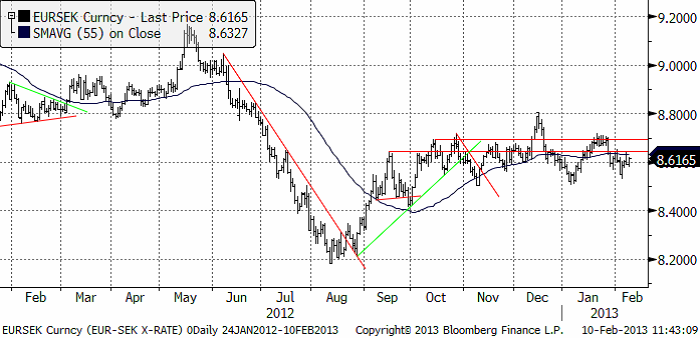 EURSEK fortsatte att röra sig sidledes i veckan som gick. Utsikterna för den kommande veckan är att detta kommer att fortsätta.