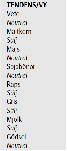 Däremot visade siffrorna att det inte var så illa som några befarat. I förhållande till de senaste årens relation mellan pris och väntat utgående lager ligger priserna på vete, majs och sojabönor i linje med vad som varit ”rätt” pris.