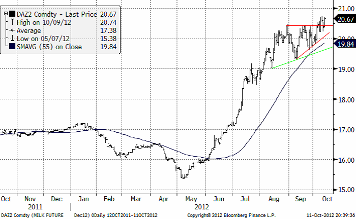 På den amerikanska börsen CME i Chicago har priset på Klass 3 mjölk gått över det senaste motståndet och vi väntar oss att priset söker sig till högre nivåer.