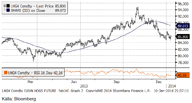 Lean hogs tycks ha stabiliserat sig vid 85 cent.