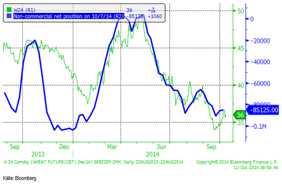 Det börjar utveckla sig till köpläge i vete. Det finns antagligen utrymme för en liten nedgång på kort sikt, men på längre sikt finns en klar uppsidespotential.