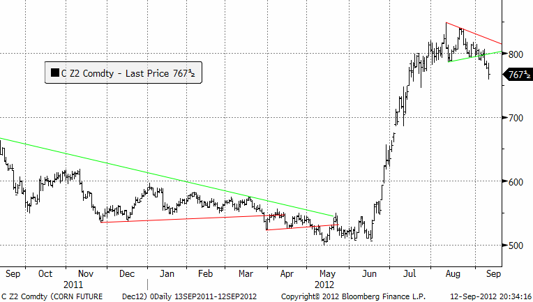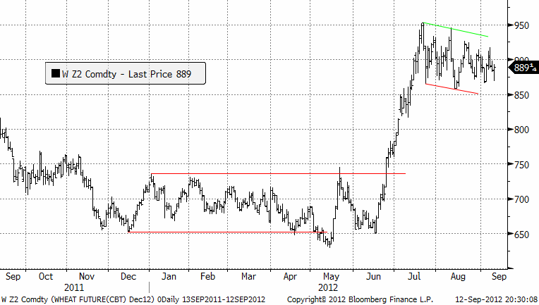 Vi väljer alltså på tekniska grunder att förhålla oss neutrala till marknaden, men risken är allt jämt på uppsidan. Mot slutet av september ska USDA berätta om lagren av spannmål, t ex majs, per 1 september. Eftersom WASDE för majs målades i lika rosa skimmer, är det möjligt att det blir en trigger, eller så hinner något land införa exportbegräsningar innan.