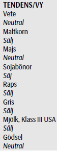 Vi ändrar nu rekommendationen för vete och majs till neutral från sälj.