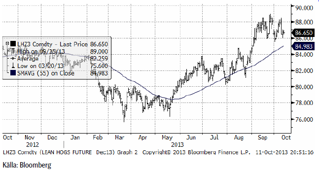 USA:s jordbruksdepartement är stängt pga budgetproblemen, vilket innebär att vi inte har några crop conditions, inga exportsiffror och ingen WASDE-rapport. Den skulle ha kommit den 11 september och analytikerna behöver ca 10 dagar på sig. Det innebär att den kan komma först den 24 oktober. Då är det nästan ingen idé att publicera den, vilket kan innebära att den helt kommer att utgå.