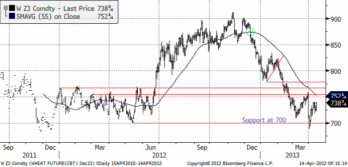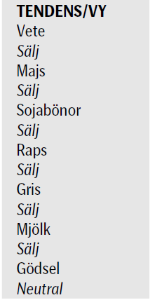 Decemberkontraktet på CBOT var nere och rörde vid 700 cent, som i all fall för närvarande kan betraktas som en bottennivå. Vi har i princip haft sidledes prisrörelse sedan början av mars och det finns ännu inte något som får mig att tro något annat.