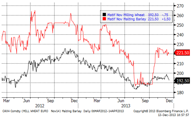 November 2014 – kontraktet på har den senaste tiden gått lite svagare än Matif-vetet.