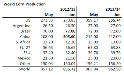 På grund av den sena sådden i USA sänker man skördeestimatet för 2013/14 till 355.74 mt.