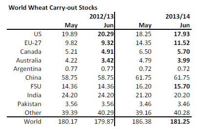 Utgående lager 2012/13 sänktes 1 mt på global basis, beroende på den lägre skörden.