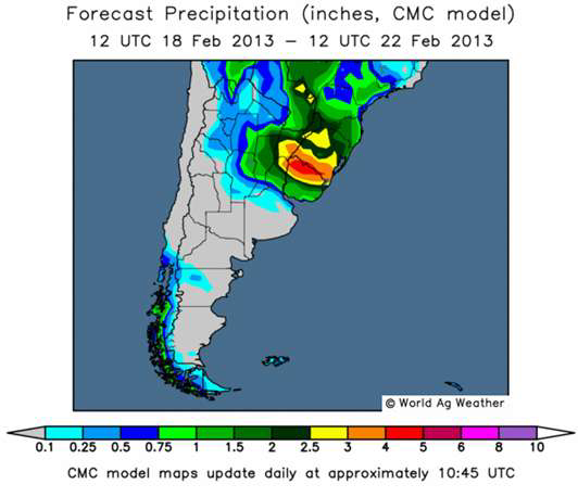 Norra Argentina / södra Braslien, som har varit torrt har blivit fuktigare och Mato Grosso, där det nu skördas, har det blivit torrare. Perfeito, tycker de säkert.