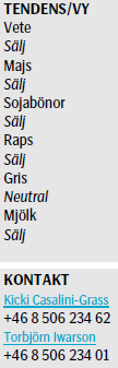 Det ligger dock en hel del ”luft” i efterfrågeprognosen från USDA, som vi skrev om förra veckan. Farmdoc har som vi tidigare skrivit om, beräknat att även en 14% lägre majsskörd än väntat ger högre utgående lager. Slutsatsen är att vi behåller vår säljrekommendation på majs.