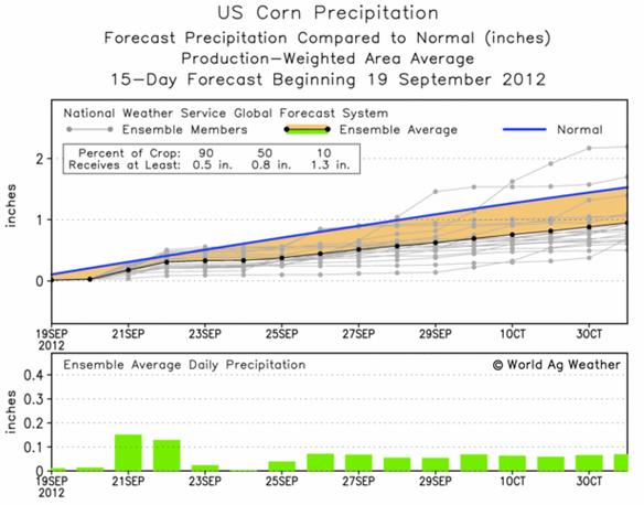 Utlovade prognoser om regn, bla i Mato Grosso och norra Brasilien under andra halvan av september, lättade oron över att torkan även ska komma att påverka Brasiliens nästa sojabönsskörd, vilken förväntas nå rekordnivåer. Även Argentina beräknas få regn de kommande dagarna.