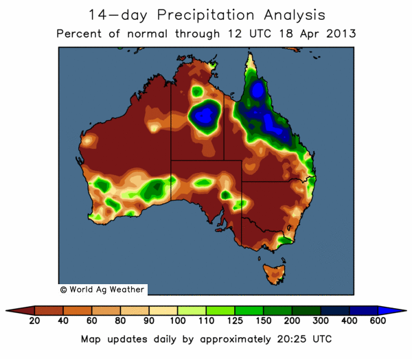 På andra sidan klotet, där vårbruket snart ska starta, är det ovanligt torrt, som vi ser av nederbördskartan nedan.