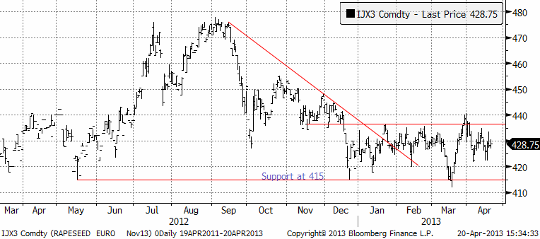 Rapspriset (november 2013) ligger kvar på någorlunda hög nivå. En anledning är att skörden i Europa väntas bli ca 1 månad senare än normalt.