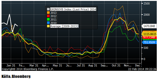November 2014 – kontraktet på maltkorn steg 5 euro till 225 euro per ton – trots en starkare Euro.