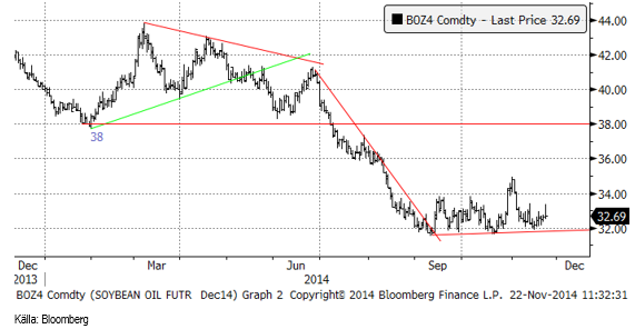 Sojaoljan ligger fortfarande i konsolidering strax över 32 cent per pund.