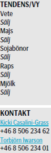 Förra veckan fick vi en rekyl uppåt i såväl spannmål som soja. Rapsfröet höll sig kvar efter uppgången veckan innan. Olika rapporter om något sänkta estimat, lite kallare väder på vissa ställen, lite varmare väder på andra och översvämningar nådde marknaden. Dessa detaljer kan dock inte förändra den stora bilden av att det blir en mycket stor skörd av spannmål i år, samtidigt som inköpschefsindex i Kina kom in på sin lägsta nivå på sju månader. Pristrenden i stort är nedåtriktad.