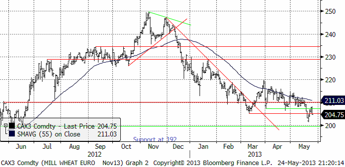 Priset på novemberterminen på Matif inledde veckan med att falla, men rekylerade sedan upp igen. Det är ett mönster man känner igen. Det som brukar följa efter är en förnyad nedgång. Jag förväntar mig att 200 euro testas redan i början av den kommande veckan.