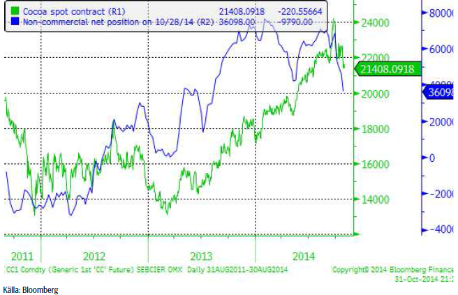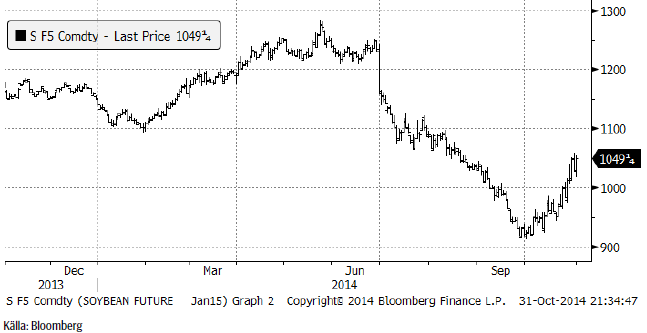 I Brasilien, där Dilma Rousseff från Arbetarpartiet (’PT’), återvaldes till president förra söndagen, föll valutan kraftigt. Vi noterade inte det så mycket i Sverige, eftersom den svenska kronan faller i samma takt. Brasilie har dock en ganska hög inflationstakt, och sojabönor är en tillgång som är opåverkad av detta. Brasilianska lantbrukare har länge haft en inställning att lagrad vara är säkrare än pengar (Reais) på banken. Det talas nu om att brasilianska lantbrukare allt mer håller igen med försäljning, vilket även det troligtvis bidrar till obalansen i marknaden.