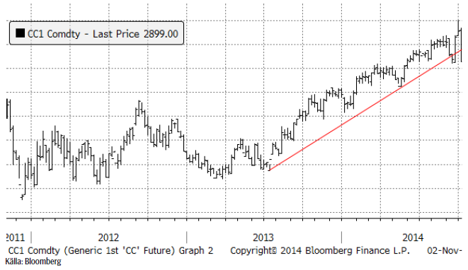 Prisuppgången beror dock troligtvis inte på farhågor för skördad volym, utan verkar bero på att det uppstått en bristsituation av andra skäl.