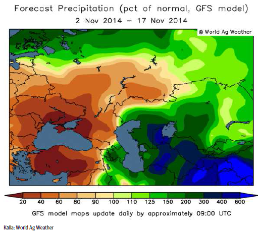 Det blev en kort episod av blötare väder för Ryssland, Ukraina och västra Asien. Tvåveckorsprognosen visar ännu torrare väder än förra gången det var torrt. Södra Ryssland och Ukraina väntas få mindre än 20% av normal nederbörd.