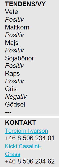[box]SEB Veckobrev Jordbruksprodukter är producerat av SEB Merchant Banking och publiceras i samarbete och med tillstånd på Råvarumarknaden.se[/box]