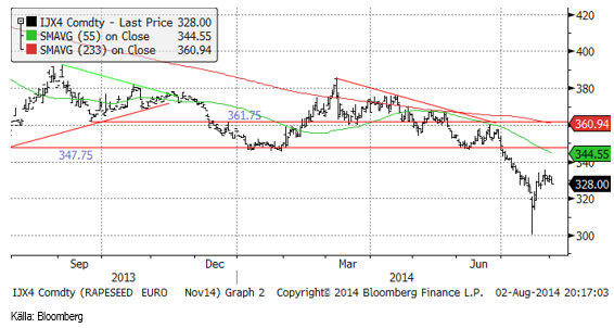 Vi går över till kortsiktig säljrekommendation på rapsfröterminer.