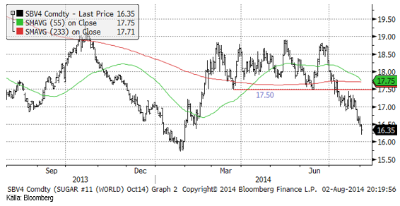Priset på socker rasade i veckan som gick, efter att ha brutit även stödnivån vid 17 cent.