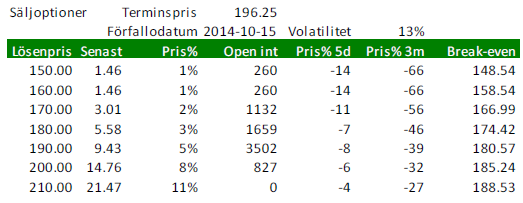 Nedanstående optioner är köpoptioner, priser per stängning i fredags.