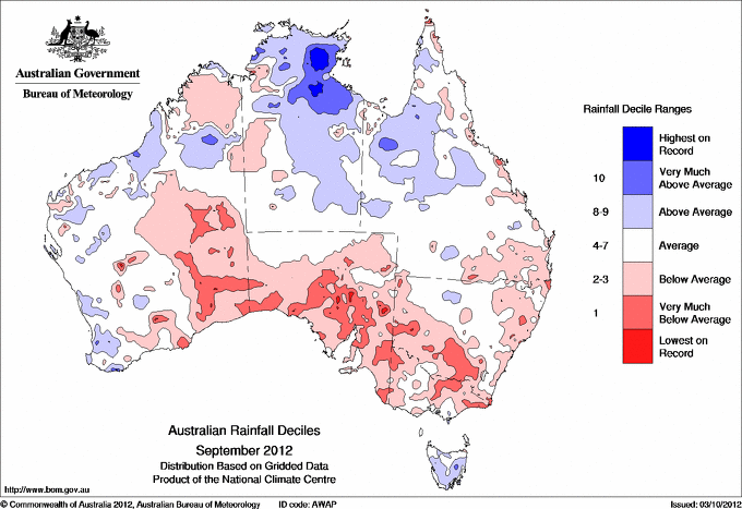 Utsikterna för Australiens vete har inte direkt förbättrats då nederbörden i september låg under genomsnittet i merparten av fastlandets södra delar och framförallt i New South Wales och Victoria.