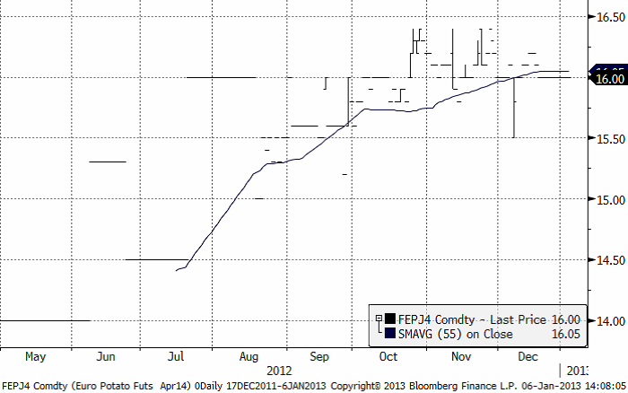 Nedan ser vi november (2013) kontraktet, där priset ligger på 220 euro, en viss stödnivå.