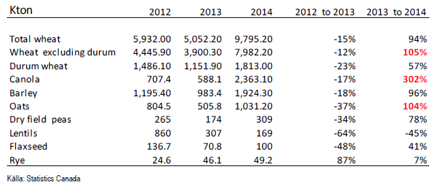 För canola låg förväntningarna på 3 mt med ett prognosintervall på 2.4 – 3.8 mt. 2.36 mt var alltså till och med under prognosintervallet.