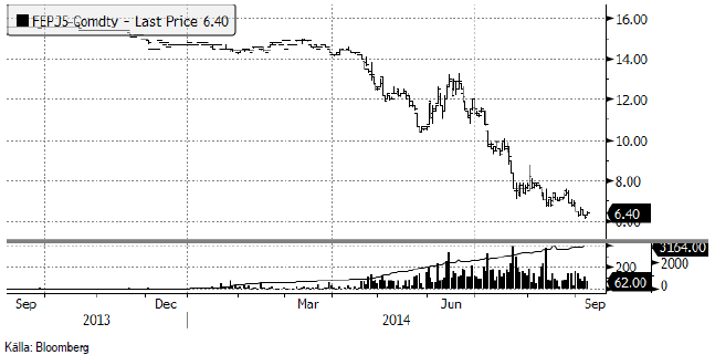 Nedan ser vi maj-2015-kontraktet. Där syns prisfallet tydligare.