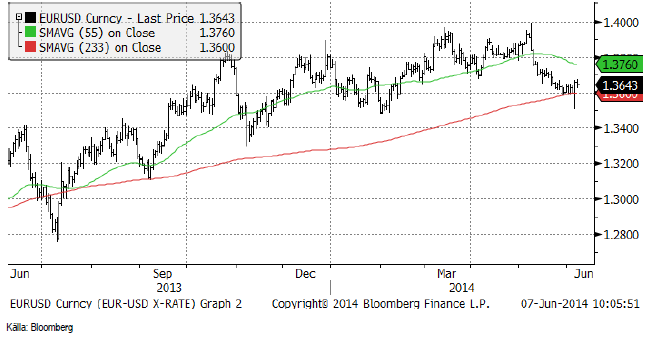 En viss del av Matifmarknadens styrka kom från eurons försvagning efter ECB:s sänkning av inlåningsräntan till negativ ränta i torsdags. Euron föll först kraftigt mot dollarn, men återhämtade sig dock ganska snabbt och stängde faktiskt på en högre nivå än dagen innan. Fredagens handel på valutamarknaden behöll i stort sett nivån.