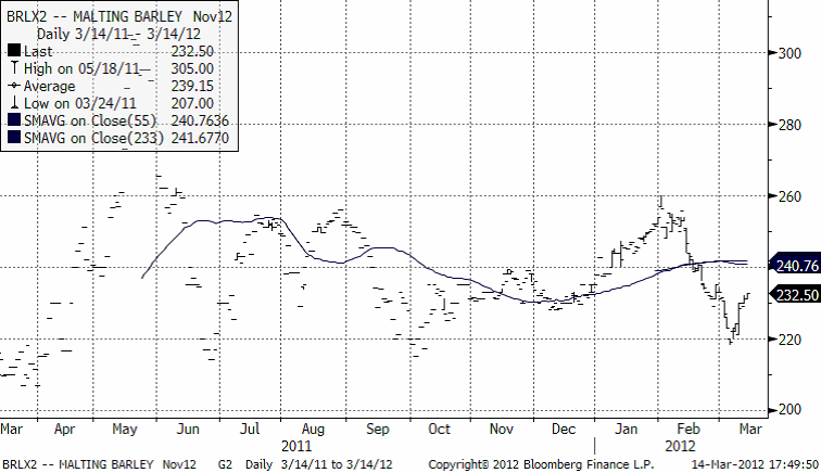 Novemberkontraktet på maltkorn rekylerade upp i veckan som gick.