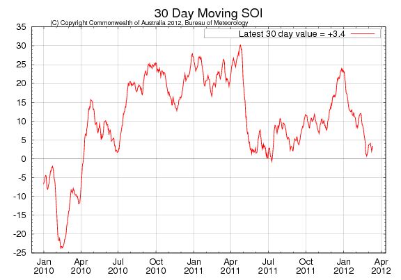 La Niña fortsätter att hålla sig kring noll. Även i veckan som gick rapporteras från Australiens meteorologiska byrå att ENSO-förhållandena är normala.