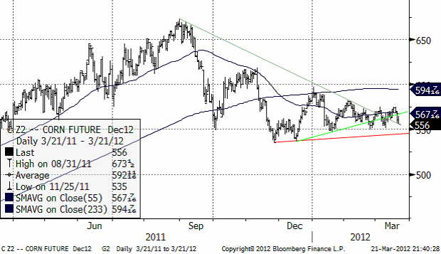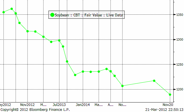 I terminskurvan ser vi marknadens övertygade förväntan om högre skördar kommande år – även i år 2012.