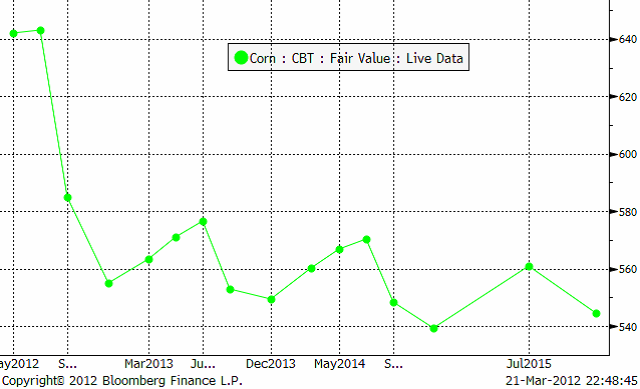 Terminskurvan avslöjar att marknaden förväntar sig mycket större skördar kommande år.