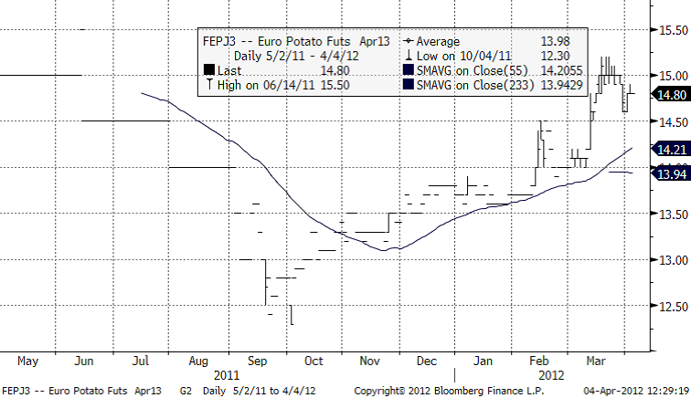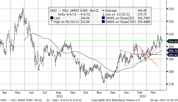 Matif kvarnvete Maj12 stängde på 212.75 – upp 5.50 EUR medan fodervete Maj12 på Liffe stängde på 174.75 GBP – upp 3.75 GBP.