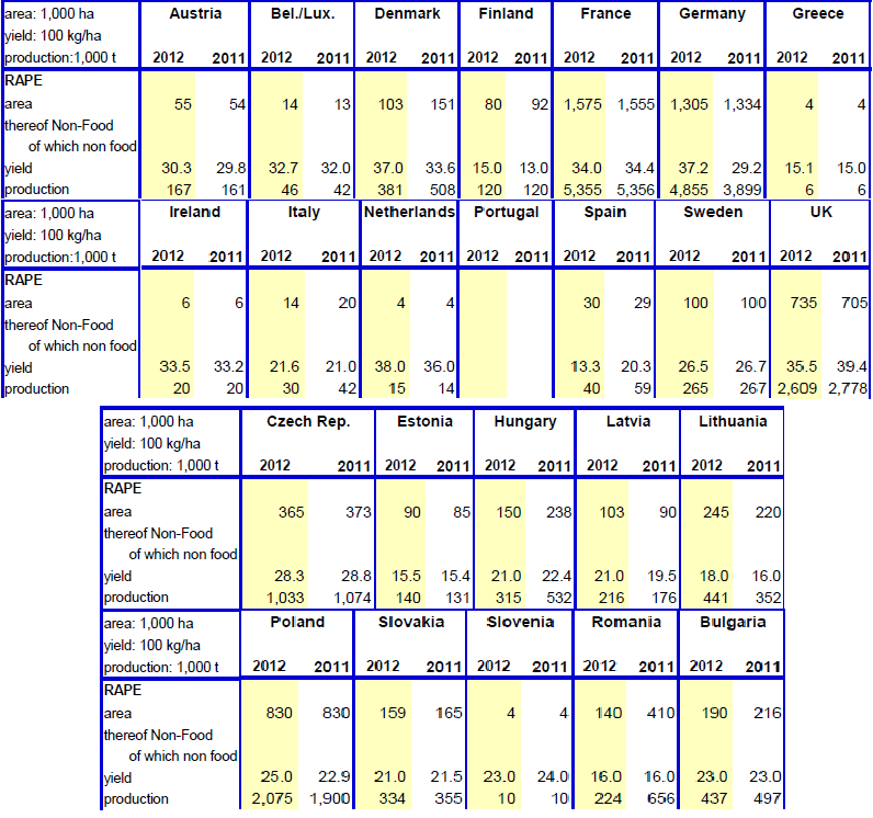 Coceral estimerar att Europas rapsproduktion kan komma att öka till 19.1 mt från 18.95 mt. Trots en återgång till en mer normal avkastning förväntas Storbritanniens produktion att uppgå till 2,6 mt, Tysklands produktion förväntas öka med 1 mt jämfört med förra året och den franska produktionen förväntas bli i stort sett oförändrad.