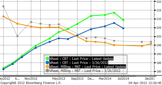 Det argentinska vetet var betydligt billigare än det franska som håller ett högt ett pris förstärkt av rädsla för konsekvenserna av den köldknäpp som drabbade Europa i februari och dess påverkan på utbudet. Priset på det argentinska vetet var också lägre än det ryska/ukrainska som dominerade marknaden den sista halvan av 2011. Priset på det ryska vetet har påverkats av utarmningen på tillgång av vete i närheten av hamnar och för Ukrainas del är utsikterna för kommande skörd mindre bra efter höstens torka och vinterns kyla vilket gör lantbrukare mindre benägna att sälja och istället avvakta i en förhoppning om högre priser på den lokala marknaden.