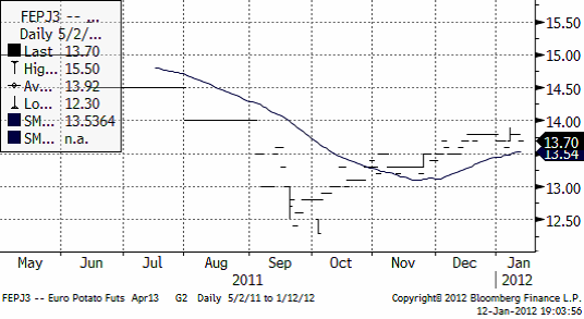 Priset på potatis har fortsatt att stiga, för leverans nästa år (av sommarens skörd).