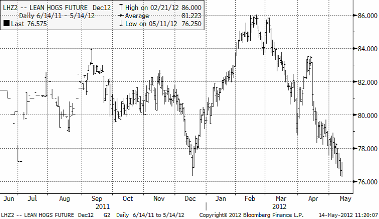Det har av naturliga skäl inte hänt speciellt mycket med lean hogs sedan förra veckobrevet. Priset ligger på samma (låga) nivå.
