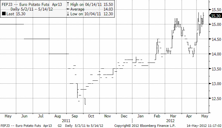 Potatispriset för leverans nästa år fortsätter att stiga. Priset är definitivt i stigande trend.